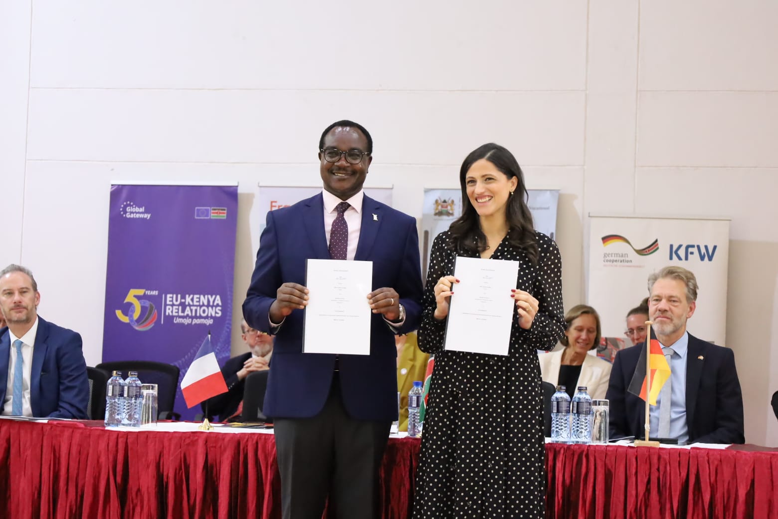 Earlier today, financing agreements totalling €46.85 million (approximately Kshs. 7.2 billion) were formally exchanged to advance cooperation on the digitalisation of TVET in Kenya. The high-level ceremony was attended by the Cabinet Secretary for Education, Hon. Julius Ogamba, EBS; the French Minister Delegate for Francophonie, International Partnerships and French Nationals Abroad, Ms Éléonore Caroit; the EU Ambassador to Kenya, H.E. Henriette Geiger; the Deputy German Ambassador to Kenya, H.E. Alexander Fierley; and the French Ambassador to Kenya, H.E. Arnaud Suquet.